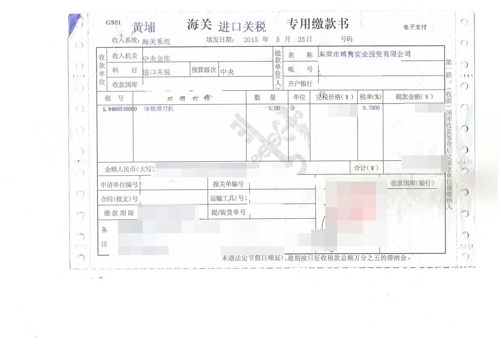 三、冰鞋磨刀機(jī)進(jìn)口報(bào)關(guān)案例展示