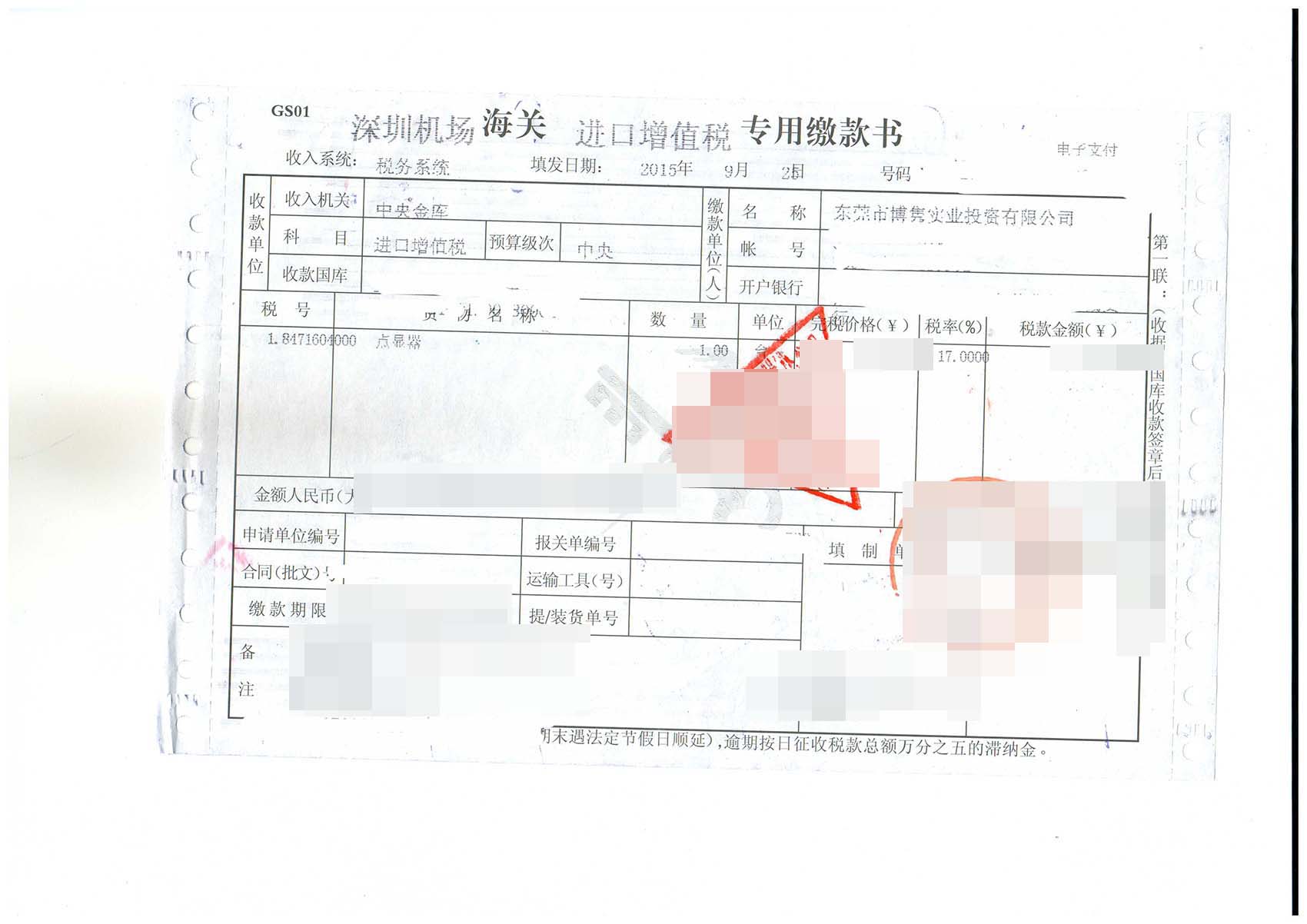 進口日期:20150918客戶:東莞市松山湖某產(chǎn)業(yè)發(fā)展有限公司