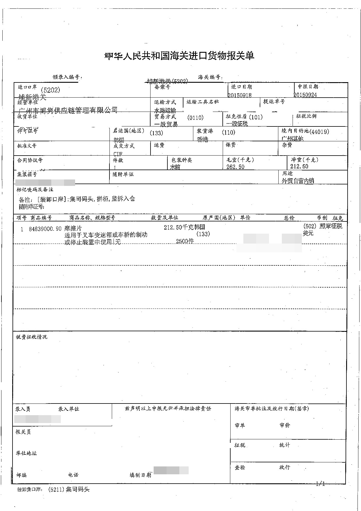 【文章標(biāo)題】:摩擦片進(jìn)口報關(guān)手續(xù)案例【建議收藏】 http://www.i418300.com/lm8/87.html 轉(zhuǎn)載請注明出處