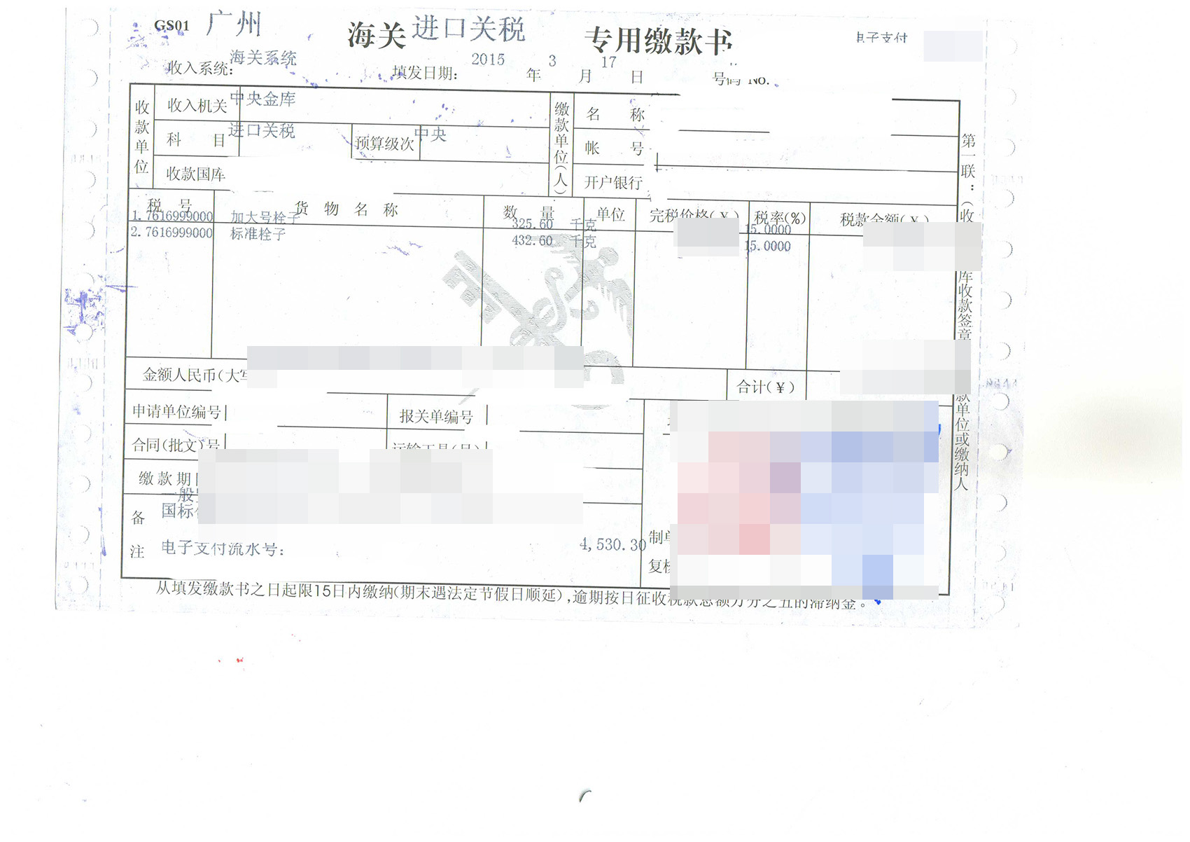4、海關(guān)審價(jià)出稅單;