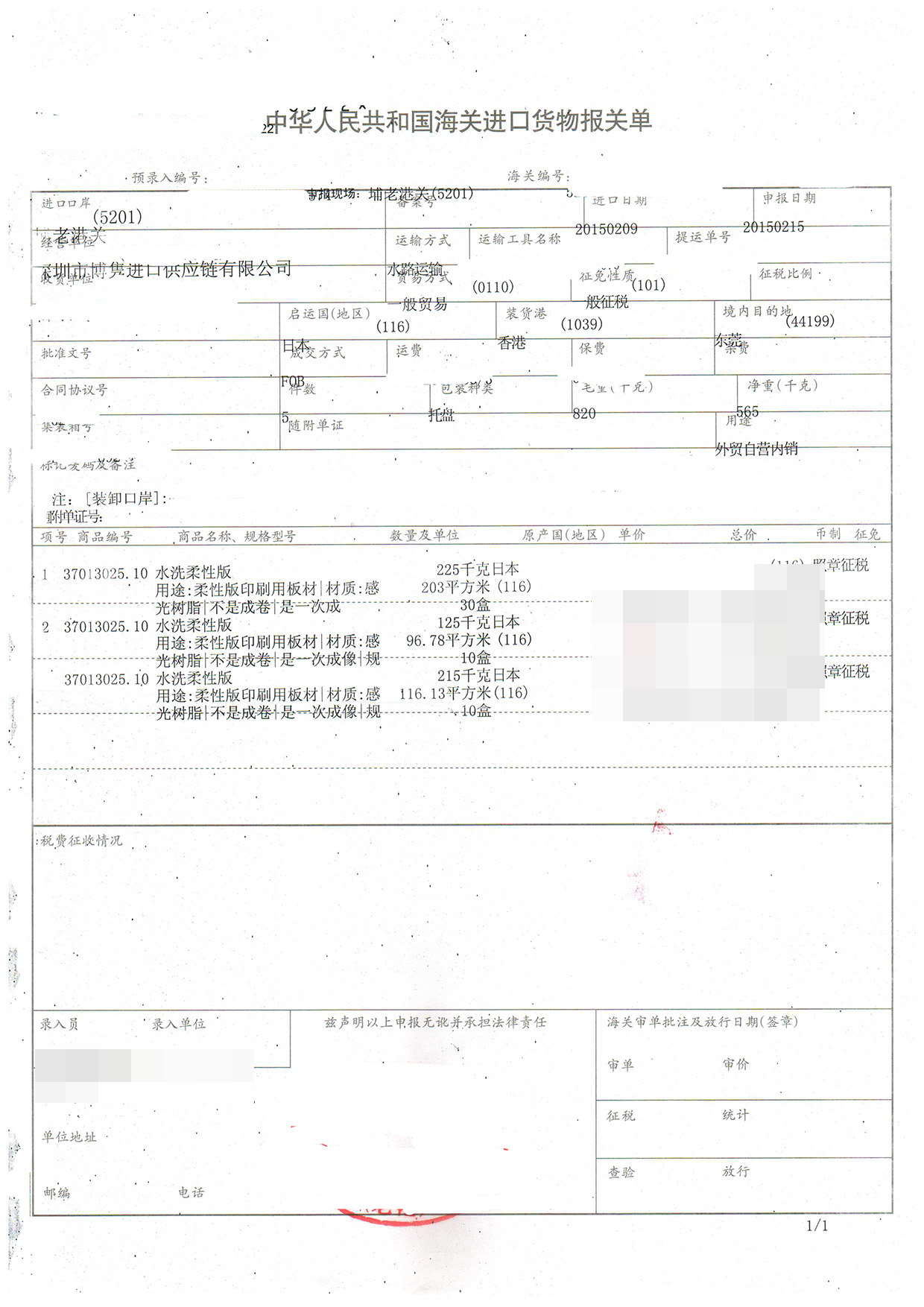 三、水洗柔性版進(jìn)口報(bào)關(guān)案例展示