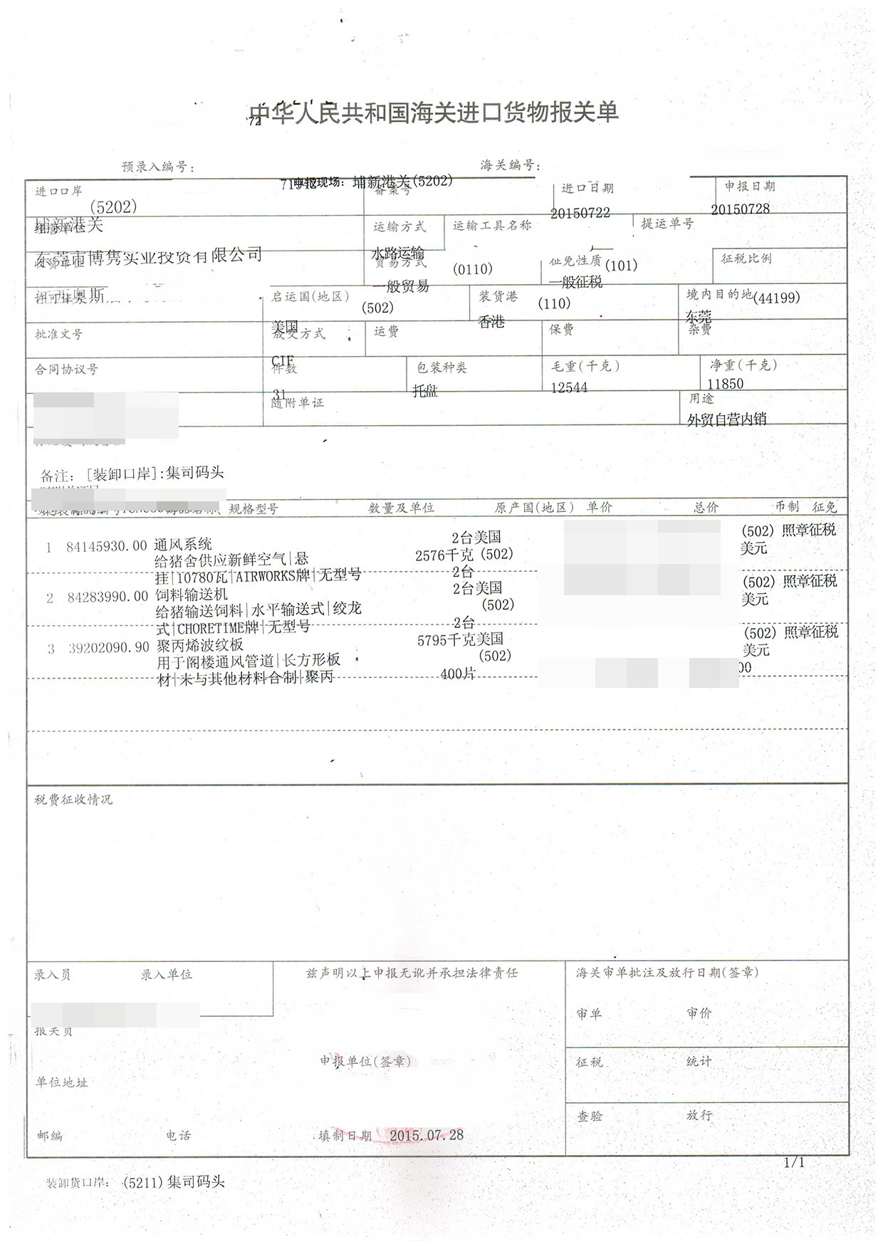 進(jìn)口日期:20150722