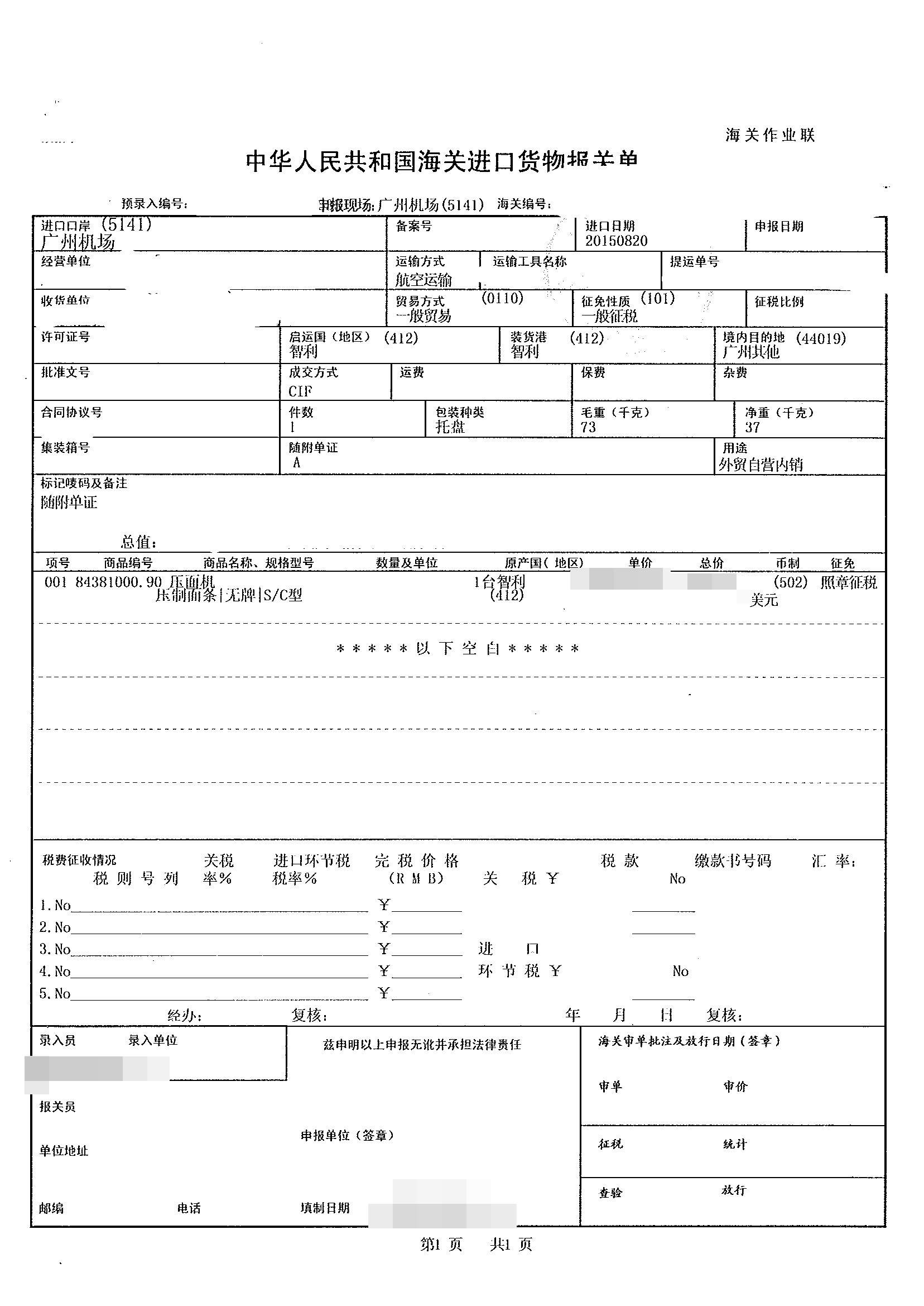 二、壓縮機(jī)進(jìn)口報(bào)關(guān)案例展示