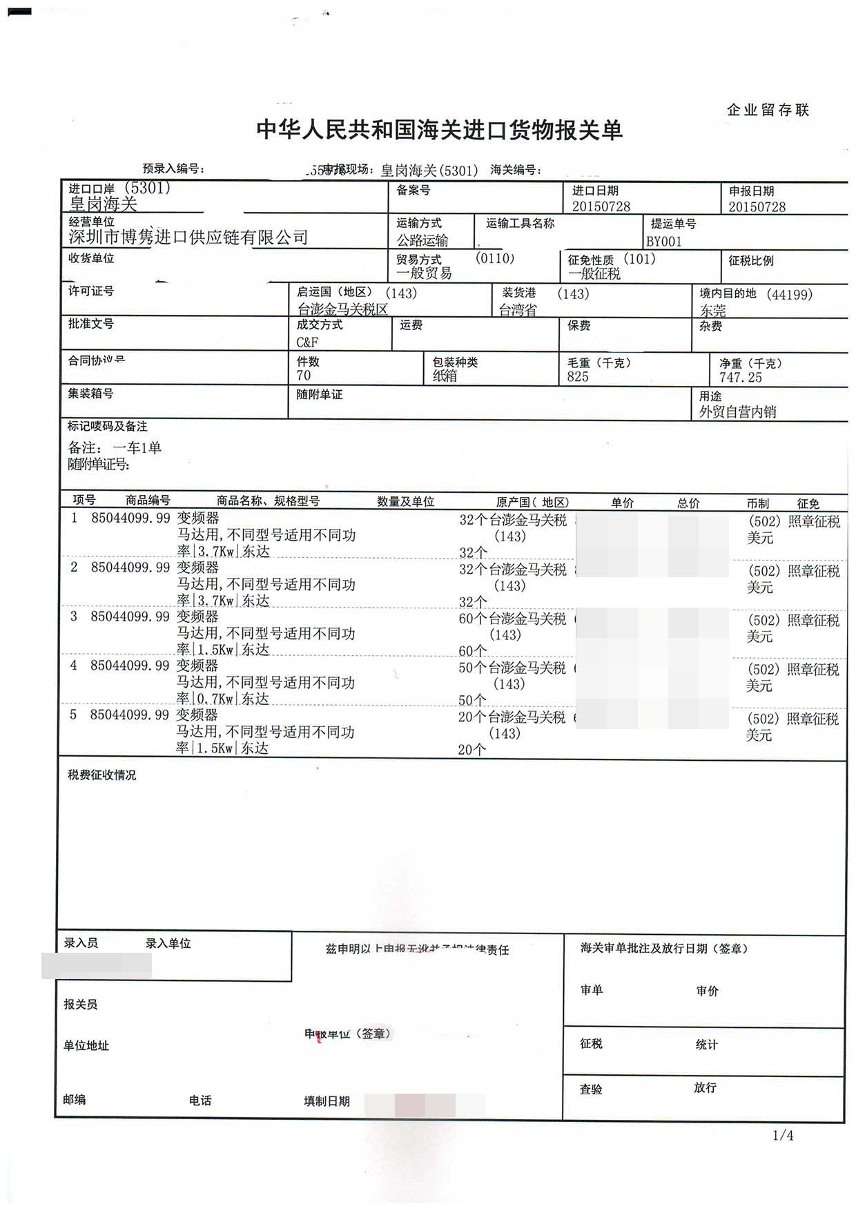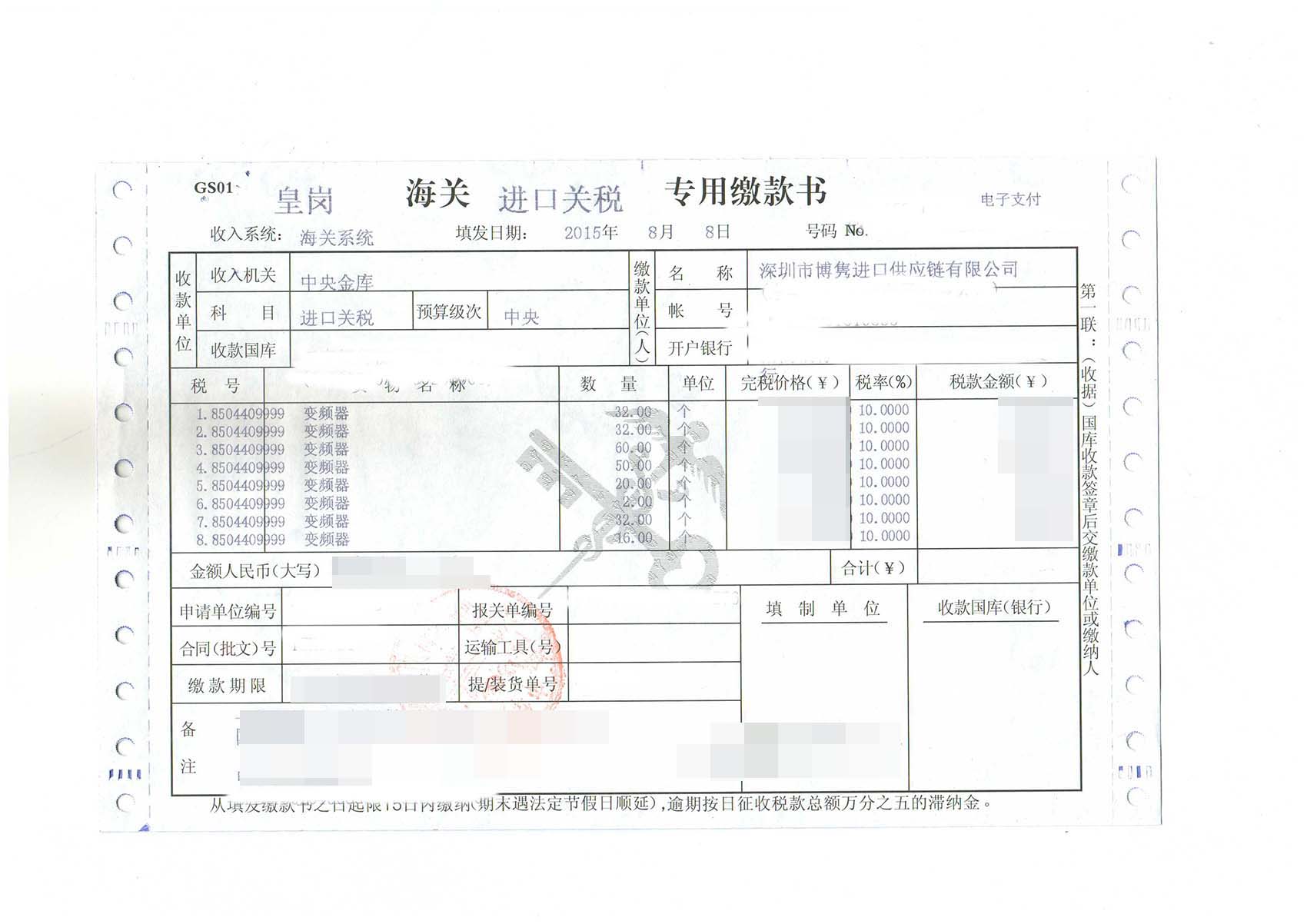 操作貨物:變頻器、變頻器配件:電源板、變頻器驅(qū)動(dòng)板等