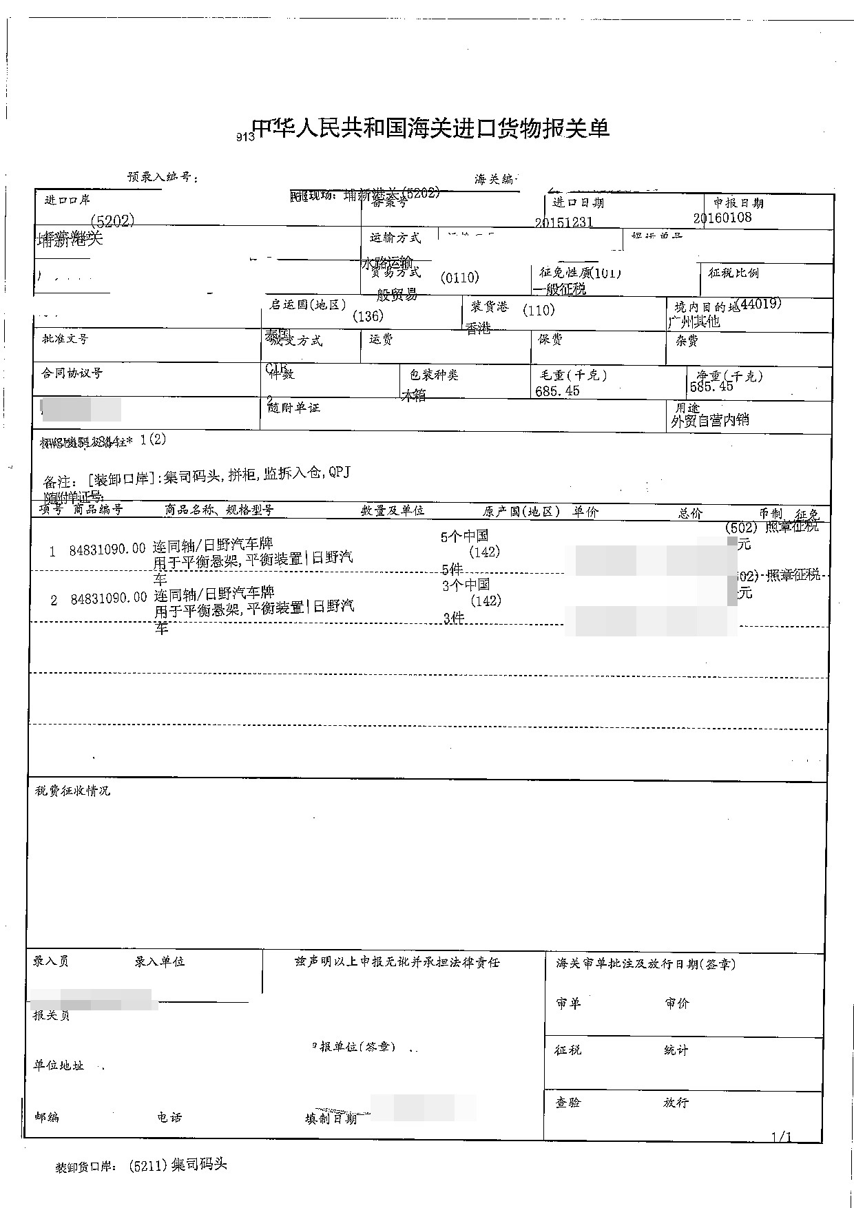 進(jìn)口日期:20151231