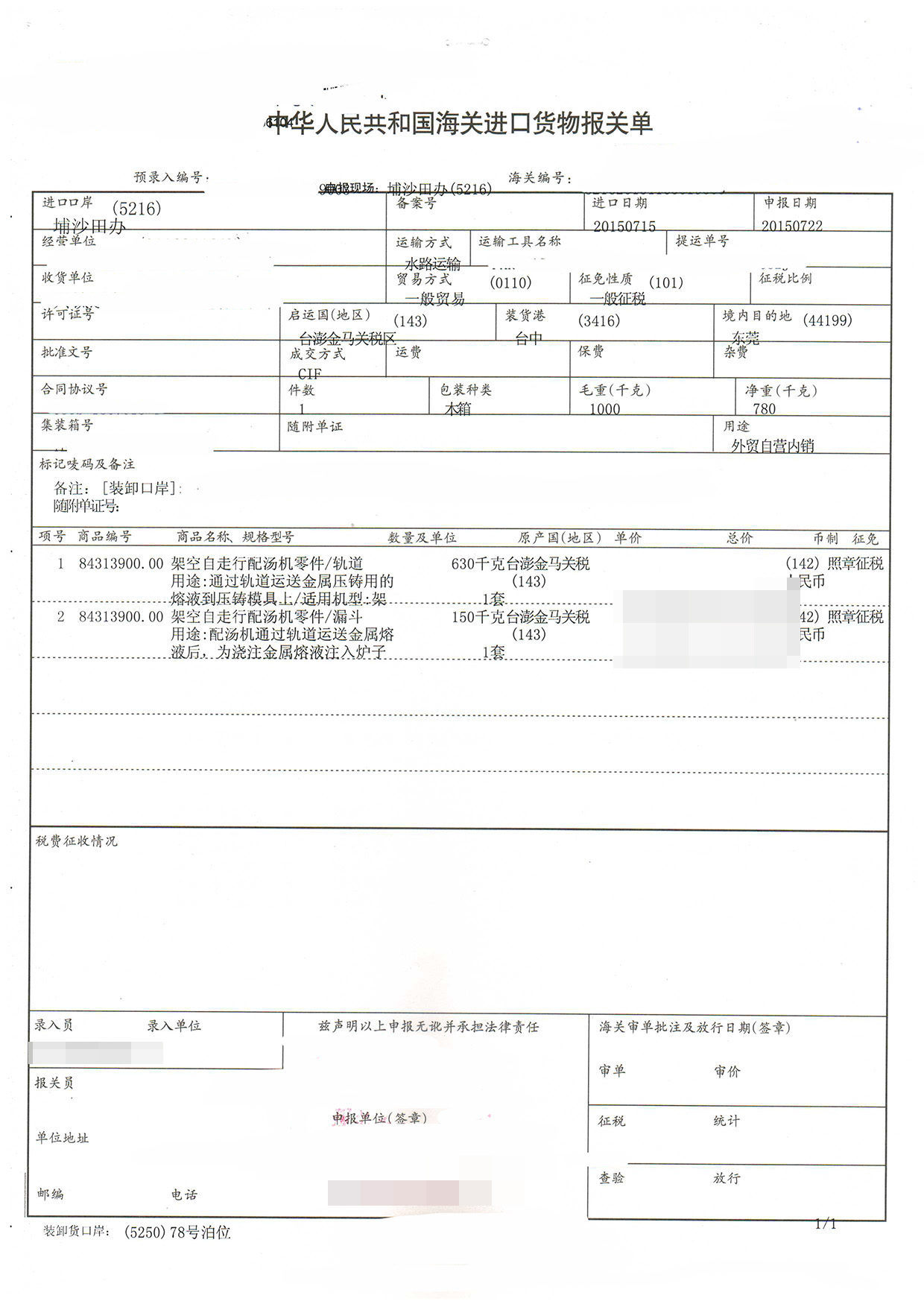 二、配湯機(jī)配件進(jìn)口報(bào)關(guān)案例展示