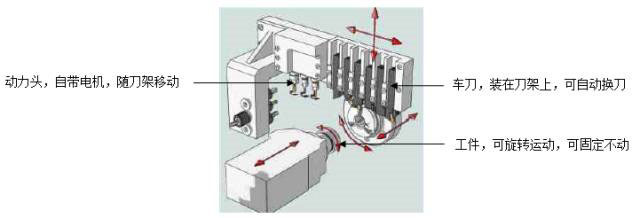 車削中心是指配有動力驅(qū)動刀具裝置,并使夾持工件主軸具有圍繞其軸線定位能力的數(shù)控車床。他既能進行車加工,還能使工件固定并使用動力驅(qū)動刀具(所謂的動力頭)對工件進行除車以外的銑/鉆/鏜等其他切削加工,由于此類商品以車為主,并沒有增加額外的旋轉(zhuǎn)工具軸,故其他刀具必須自帶旋轉(zhuǎn)動力,整體仍屬于車床的范疇。