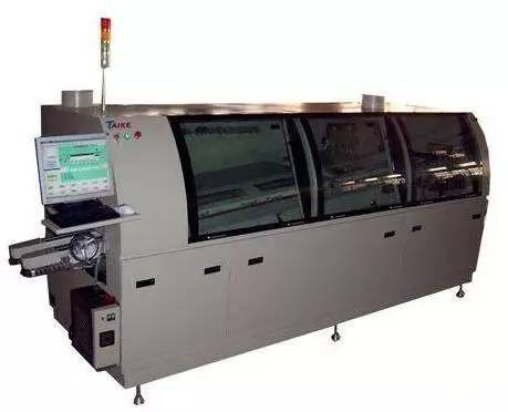 波峰焊機(jī)是指將熔化的鉛錫合金燈焊料,經(jīng)電動(dòng)泵或電磁泵噴流成設(shè)計(jì)要求的焊料波峰,亦可通過向焊料池注入氮?dú)鈦硇纬刹ǚ?,使預(yù)先裝有元器件的印制板通過焊料波峰,實(shí)現(xiàn)元器件焊端或引腳與印制板焊盤之間機(jī)械與電氣連接的設(shè)備。