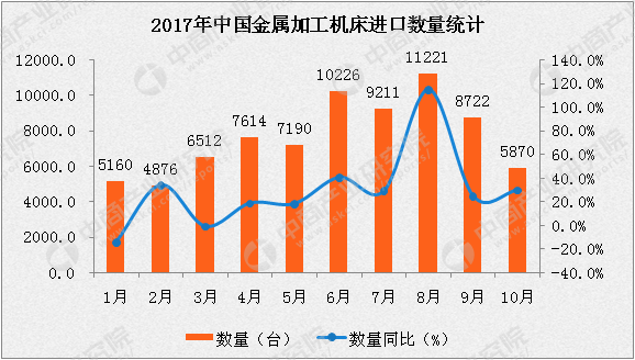 博裕機(jī)械進(jìn)口報(bào)關(guān)行了解到,2017年10月中國金屬加工機(jī)床進(jìn)口量為5870臺(tái),同比增長29.9%。2017年1-10月中國金屬加工機(jī)床進(jìn)口量為72695臺(tái),與去年同期相比增長24.8%。