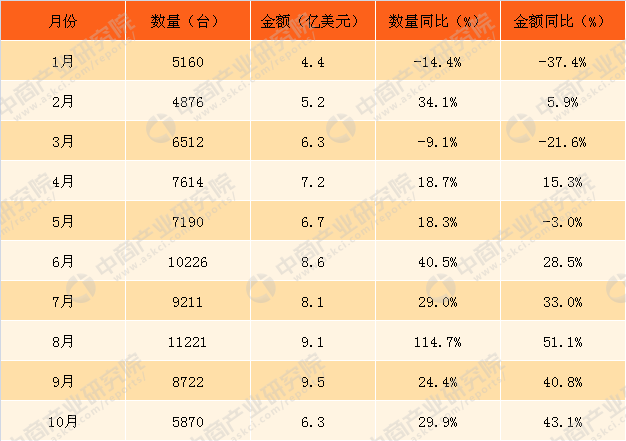 2017年1-10月中國金屬加工機(jī)床進(jìn)口情況一覽表