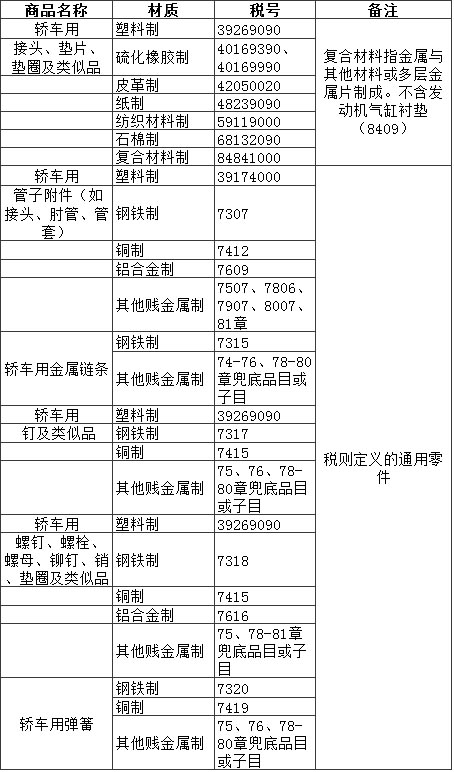 關(guān)于轎車零部件進(jìn)口報關(guān)歸類淺析