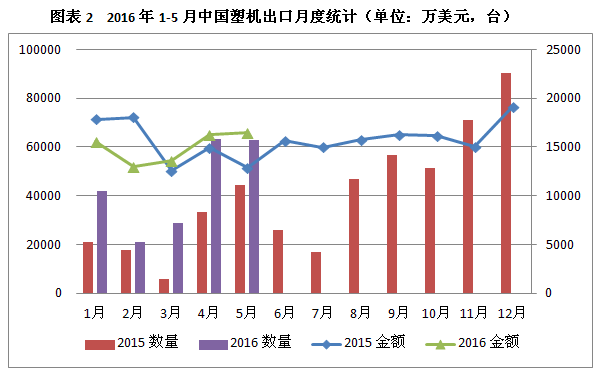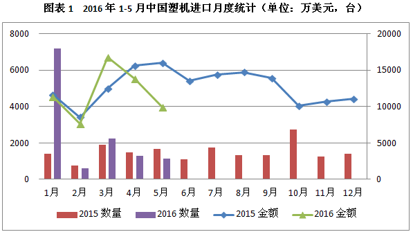 2016年1-5月中國塑料機械進出口報關(guān)雙雙下降