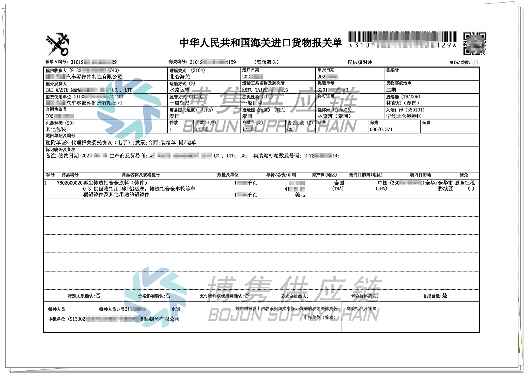 1、博雋供應(yīng)鏈對(duì)再生金屬(再生銅、鋁、鋁錠)有著豐富的進(jìn)口經(jīng)驗(yàn),代理過多家企業(yè)進(jìn)口。2、所有資料模板博雋皆可提供,減少企業(yè)整理資料的麻煩,省事省心,提高效率。